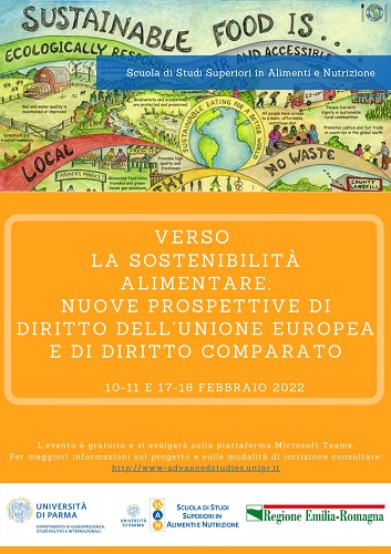PARMA – “Verso la sostenibilità alimentare: nuove prospettive di diritto dell’Unione europea e di diritto comparato” è il tema dell’appuntamento in programma in due step, 10-11 e 17-18 febbraio, su piattaforma Teams. Realizzato dal Dipartimento di Giurisprudenza, Studî Politici e Internazionali e dalla Scuola di Studi Superiori in Alimenti e Nutrizione dell’Università di Parma, il progetto formativo è promosso dalle docenti Laura Pineschi e Lucia Scaffardi e si avvale anche del sostegno finanziario della Regione Emilia-Romagna.