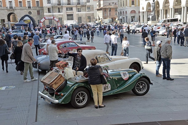 CERVIA (RA) – E’ partito questa mattina da Brescia, alle ore 9, il serpentone composto dalle 125 auto d’epoca e supercar che partecipano alla XXI edizione della 500 Miglia Touring. La prima sosta significativa, dopo aver attraversato alcuni paesi del bresciano, è stata quella nella splendida piazza Sordello a Mantova. Qui la vice presidente del consiglio comunale ha scelto di premiare – come macchina che più le è piaciuta – la Fiat 124 Spider Usa del 1978 guidata da Solofrizzo Fabio con De Bona Rosanna e Solofrizzo Gianluca.