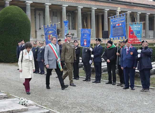MODENA – Il sindaco di Modena Gian Carlo Muzzarelli e il comandante dell’Accademia militare generale di divisione Davide Scalabrin, insieme con le autorità civili e militari e i rappresentanti delle associazioni combattentistiche e dell’Anpi, hanno partecipato alle celebrazioni che si sono svolte nella mattina di oggi, giovedì 2 novembre, al cimitero monumentale di San Cataldo. Tra i presenti anche la prefetta Alessandra Camporota.