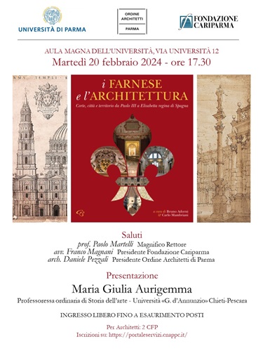 PARMA – Martedì 20 febbraio alle 17.30 l’Aula Magna dell’Università di Parma (Sede centrale, via Università 12) ospiterà la presentazione del volume I Farnese e l’architettura. Corte città e territorio da papa Paolo III a Elisabetta regina di Spagna, a cura di Bruno Adorni e Carlo Mambriani (GBEditoriA, Roma 2023).