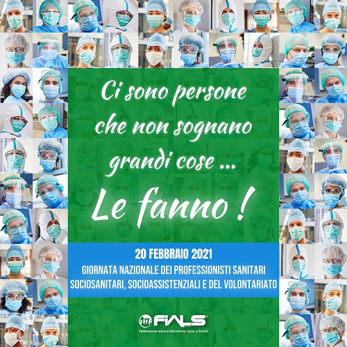 ROMA – “Durante questo lungo interminabile anno di lotta al Covid, abbiamo visto con sgomento e senso d’impotenza che tanti operatori sanitari e sociosanitari impegnati in prima linea non ce l’hanno fatta. Persone straordinarie, prima ancora che professionisti, colleghi ed amici a cui oggi intendiamo tributare un ricordo commosso e infinita gratitudine. Il loro sacrificio ha costituito e costituisce tuttora il simbolo estremo di generosità e altruismo, di abnegazione e alto senso del dovere, che contraddistingue la nostra società civile”. Così Giuseppe Carbone, segretario generale della Fials, in occasione della prima ‘Giornata nazionale dei professionisti sanitari, sociosanitari, socioassistenziali e del volontariato’ che si celebra il 20 febbraio.