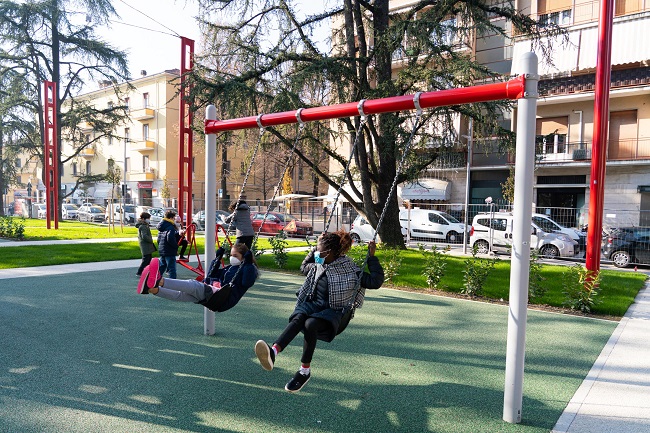· PARCO DEL DONO – Via Bizzozzero – Verrà sostituito il gioco inclusivo recentemente vandalizzato con una nuova attrezzatura inclusiva che in quello spazio registra un elevato utilizzo.