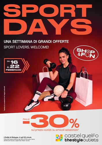 CASTEL GUELFO (BO) – Dopo il successo dello scorso anno, a Vicolungo e Castel Guelfo The Style Outlets tornano gli Sport Days con un fine settimana ricco di sfide virtuali, tornei dal vivo e premi imperdibili.