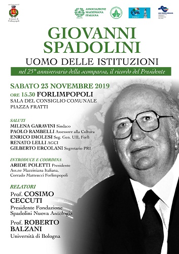 Si intende ricordare anche la visita che SPADOLINI fece a Forlì e Forlimpopoli il 19 Settembre 1981 da Presidente del Consiglio dei Ministri, primo Presidente NON Democristiano nella Storia della Repubblica Italiana.