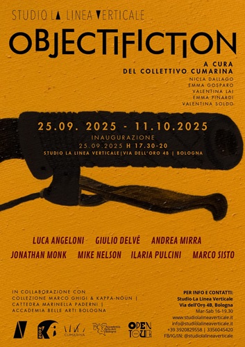 BOLOGNA – Con grande piacere vi invitiamo il 25 settembre all’inaugurazione di Objectifiction, una mostra che nasce da uno dei progetti finalisti del Premio Kappa-Nöun, curata dal Collettivo Cumarina e appositamente reinterpretata e adattata al nostro spazio, realizzata con il sostegno dell’Accademia di Belle Arti di Bologna.