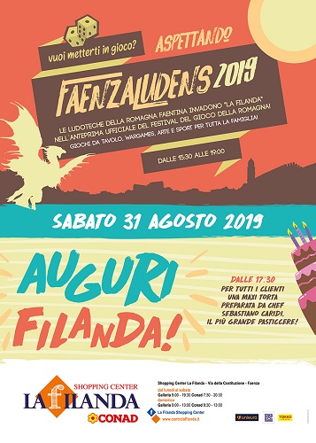 Lo Shopping Center La Filanda, infatti, ospiterà per il secondo anno consecutivo l’anteprima ufficiale dell’evento “Faenza Ludens 2019”, il Festival gratuito del Gioco della Romagna, in programma i prossimi 28 e 29 settembre, nel Palazzo delle Esposizioni di Faenza.