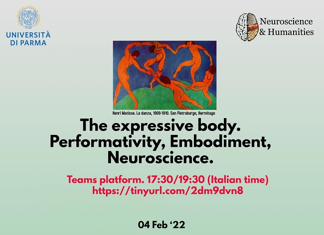 Alle 17.30 su Teams. Appuntamento del ciclo “Il Corpo Espressivo. Performatività, Embodiment, Neuroscienze” organizzato dal Laboratorio Interdipartimentale Neuroscience & Humanities dell’Università di Parma
