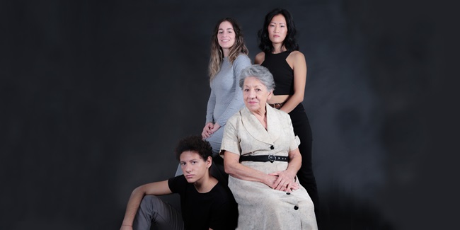 Protagonista sul palco, la straordinaria Lucia Zotti insieme alle/ai giovani attrici e attori Alessio Zirulia, Lorena Nacchia e Annabella Lu.