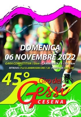 CESENA – Ritorna l’appuntamento con il Giro dei Gessi di Cesena. La 45^ edizione della gara storica cesenate, dopo la pausa forzata causata dalla pandemia, si ripropone consolidando l’ormai classico appuntamento del primo weekend di novembre.