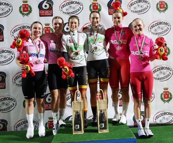 FIORENZUOLA D’ARDA (PC) – Al Velodromo “Attilio Pavesi” di Fiorenzuola si è chiusa la quinta e penultima serata di questa edizione della 6 Giorni delle Rose Internazionale, nella quale è stata incoronata la coppia vincitrice della madison (alla quale concorrevano anche i punti del giro lanciato). Successo delle ceche Barbora Nemcova e Gabriela Bartova (coppia della Acef) che in un’emozionante finale, all’ultimo giro, hanno superato le polacche Patrycja Lorkowska e Maja Tracka (Rosti), in testa già da lunedì, la prima delle tre serate con in programma la madison femminile, ma alla fine sono scivolate al terzo posto, superate anche dalla coppia australiana della Bussandri composta da Sally Carter e Keira Will. Alle vincitrici è andata la maglia bianca Siderpighi