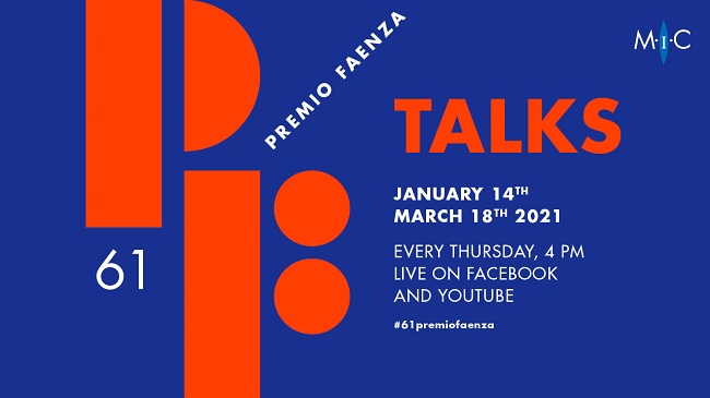 FAENZA (RA) – Ogni giovedì, fino al 18 marzo 2021 (ore 16), il MIC di Faenza propone i “61° Premio Faenza Talks”: una serie di presentazioni in diretta sui canali social Facebook e Youtube del MIC di Faenza degli artisti selezionati al Concorso Internazionale della Ceramica d’arte Contemporanea – 61° Premio Faenza.