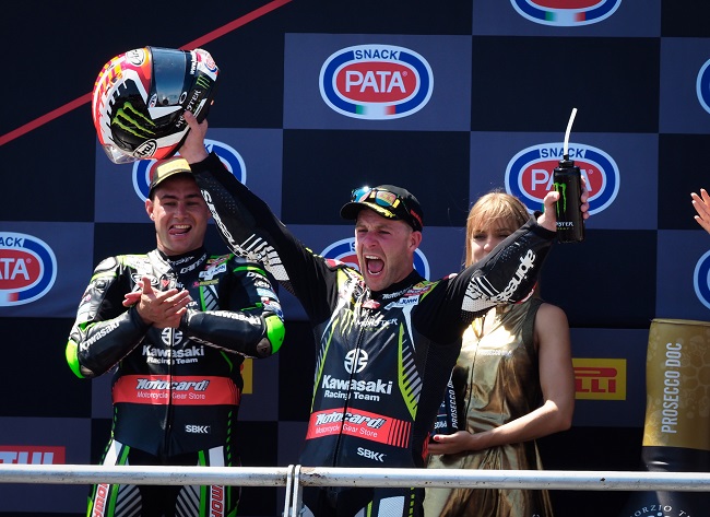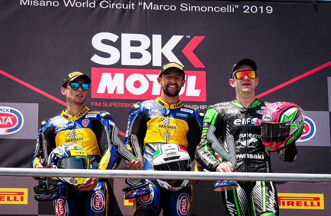 In Race 2 Bautista parte davanti, con Haslam e Razgatlioglu alle spalle. Il colpo di scena arriva subito al secondo giro, con Bautista che scivola e lascia campo libero a tre Kawasaki. Al quarto giro Razgatlioglu guadagna il comando e Rea lo segue subito da vicino. I due prendono un po’ il largo, mentre c’è la scivolata di Melandri che era quarto. Rea attende il momento giusto, al 13° giro passa in testa, ma Razgatlioglu gli resta sempre vicino per preparare un attacco. Ci prova il campione turco, ma Rea lo respinge e porta a casa una vittoria importantissima per la classifica. Haslam chiude al terzo posto davanti a Lowes. Quinto, splendido, Michael Ruben Rinaldi. Gli altri italiani: 8° Pirro, 9° Zanetti, 13° Cavalieri, 16° Melandri.