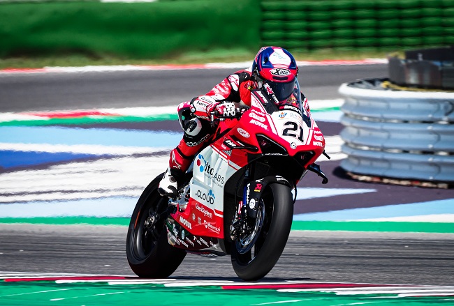 In mattinata warm up con Jonathan Rea ancora velocissimo, Bautista e Lowes alle sue spalle. La Tissot Superpole Race, gara sprint su 10 giri che disegna anche la griglia di Race 2, ecco la riscossa di Bautista e della Ducati. Partenza a razzo di Rea che al semaforo verde tiene dietro Cortese e Bautista. Al terzo giro lo spagnolo completa la rimonta, rientra sulla testa della corsa e passa al comando. Rea cerca di stargli vicino e a tre giri dalla fine arrivano le emozioni: prima cade Cortese e poi anche Rea. L’inglese resta attaccato alla moto, la rialza e riparte in sesta posizione. Davanti, sfuma all’ultimo giro il podio di Sykes con la Bmw. Ne approfittano Lowes e Haslam. Quarto è Razgatlioglu, quinto Rea. Gli italiani: 6° Melandri, 7° Rinaldi, 8° Pirro, 10° Zanetti.