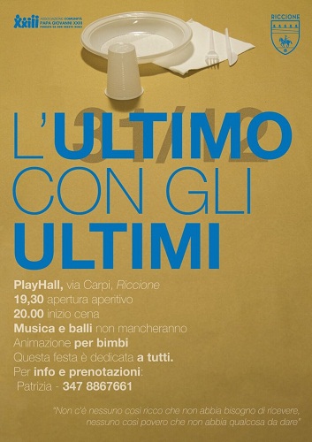 “L’Ultimo con gli ultimi” è la speciale festa dell’ultimo dell’anno organizzata dalla Comunità Papa Giovanni XXIII presso il Play Hall di Riccione, con il patrocinio del Comune.