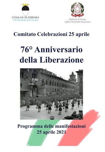 FERRARA – Entrerà nel vivo già a partire da domani (mercoledì 21 aprile) il calendario degli appuntamenti elaborato dal ‘Comitato Celebrazioni 25 aprile’, con il coordinamento dell’Istituto di Storia Contemporanea, per ricordare il 76° anniversario della Liberazione. Previsti anche quest’anno sia momenti commemorativi di tipo istituzionale (domenica 25 aprile 2021 alle 10,30 a Ferrara in piazza Cattedrale e alle 10 a Porotto) sia iniziative di carattere culturale e storico condivisi e concertati con le realtà associative del territorio e accessibili online (You Tube Comune di Ferrara – You Tube: istituto di storia contemporanea di Ferrara – Facebook: Isco Ferrarara – Instagram:@isco.fe).