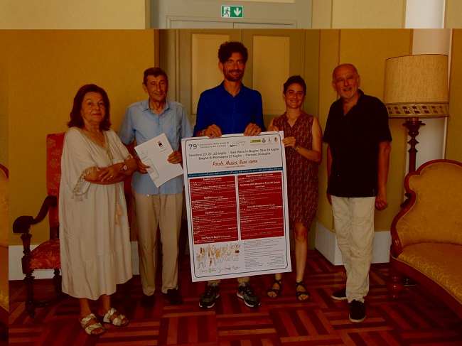 Nella foto: Ines Briganti, Presidente dell’Istituto Storico, Vladimiro Flamigni, vicepresidente dell’Istituto storico e componente dell’Associazione “Amici di Tavolicci”, Marco Baccini, Sindaco di Bagno di Romagna, Cristina Lentini, Centro Pace Cesena, e Carlo Verona, Assessore all’Inclusione e alla Cultura del Comune di Cesena.