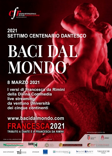 RIMINI – Francesca da Rimini tornerà a casa, non a caso nel giorno della Festa della Donna, grazie al suo bacio che risuonerà dalla Cina alle Americhe, dall’Oceania e dall’Africa alle capitali della vecchia Europa, in un Flash Mob planetario organizzato per dar inizio alle Celebrazioni per il centenario dantesco 2021 delle terre malatestiane tra Romagna e Marche.
