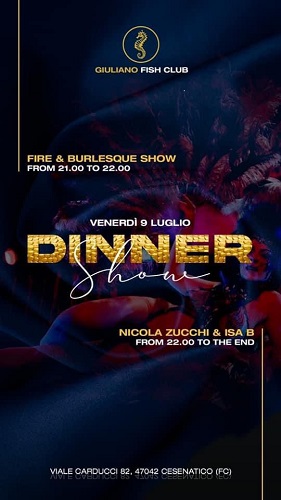CESENATICO (FC) – Venerdì 9 luglio, il nuovo Giuliano Fish Club, locale aperto dalla famiglia Sassi nel 2016 e ora completamente rinnovato negli arredi e nella cucina, ospiterà un suggestivo spettacolo di Burlesque e la performance dell’artista Valentina Zafferini, già ballerina di Cirque du Soleil, Heart, Pacha Ibiza.