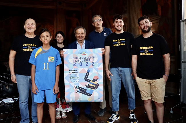 Alla conferenza stampa di presentazione svoltasi in residenza municipale giovedì 16 giugno sono intervenuti Andrea Maggi – assessore allo Sport del Comune di Ferrara, Enrico Bonora – presidente del Ferrara Tchoukball, Patrizio Fergnani – consiglio Direttivo del CSI di Ferrara, Andrea Bonora e Stefano Checchi – giocatori dei Bulls (serie A), Francesco Gigante – giocatore dei Pulcinuts (M15) e Marcella Roma – mamma di Francesco, in rappresentanza del folto gruppo di genitori che, col loro impegno volontario, permettono al Ferrara Tchoukball di organizzare l’intera stagione e l’evento del 19 giugno.