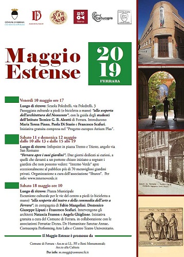 Come ormai consuetudine, anche quest’anno il Comune di Ferrara, assieme a prestigiose associazioni culturali, promuove il “Maggio Estense”, con un interessante programma di iniziative inedite rivolte a cittadini e turisti, in compagnia di giovani ciceroni, oltre che di esperti noti e stimati, che sveleranno una Ferrara incantevole e ricca di sorprese.