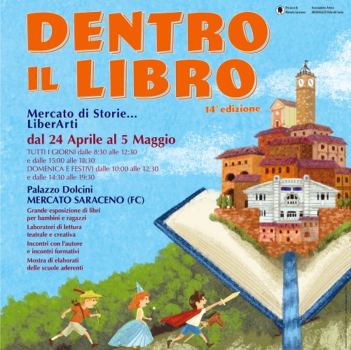 MERCATO SARACENO (FC) – E’ ricchissimo il programma della 14° edizione della mostra del libro DENTRO IL LIBRO, dedicata quest’anno al tema “Liber…Arti”, che dal 24 aprile al 5 maggio, offrirà al pubblico delle giovani generazioni, alla scuole e alle famiglie tantissimi eventi in alcuni luoghi importanti della città: scuole, piazze e Palazzo Dolcini sia al chiuso che nella tensostruttura esterna.