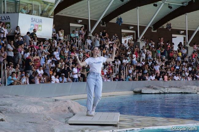 RICCIONE (RN) – Migliaia di fan in delirio per Carolina Benvenga. Un’intera Laguna di Ulisse in piedi, a ballare. È stata una vera festa, ieri (sabato 6 agosto) con una delle autrici più famose di baby dance, uno dei volti più amati dai piccoli per “La posta di YoYo” in tv. Carolina è famosissima con milioni di visualizzazioni online e in TV. Sotto lo sguardo attento e curioso di Cleo, Blue, Pelè e delle altre delfine, nella giornata di ieri (sabato 6 agosto), Carolina ha coinvolto il pubblico in balli e canti con le sue hit ‘La Pinna’, ‘La danza della spiaggia’, ‘Pesciolino Dance’ e ‘BumBum ChaCha’.