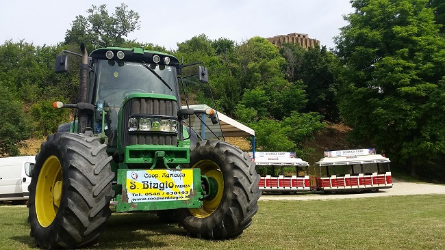 Dalle ore 10 alle 19 un carro trainato da un trattore e un trenino saranno a disposizione per un giro panoramico che toccherà le cantine (Leone Conti, Spinetta, Ancarani, San Biagio Vecchio, La Sabbiona e Poderi Morini) e l’antica torre medievale. Il punto di ritrovo sarà il parcheggio nel parco della Torre di Oriolo: da qui ogni 45 minuti ci sarà una partenza. Chi vorrà potrà anche spostarsi da una cantina all’altra percorrendo a piedi alcuni tratti panoramici segnalati da cartelli.