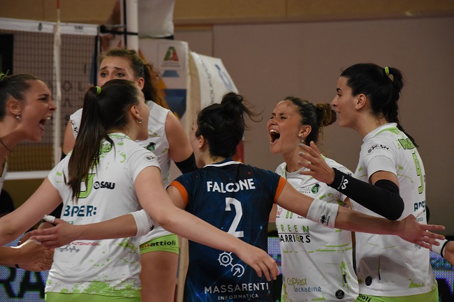 Il terzo parziale è – di fatto – una fotocopia del precedente: le padrone di casa trovano subito un buon vantaggio (6-3) e sono brave a mantenerlo (17-13). San Giovanni però non ci sta ad abbandonare la corsa troppo presto e si riporta a contatto due volte (18-16, 22-20). La Green Warriors però è lucida e chiude 25-21 con Antropova.