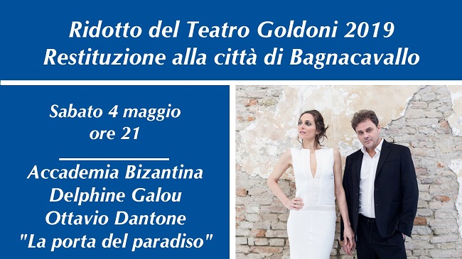 BAGNACAVALLO – Le manifestazioni celebrative della restituzione del Ridotto del Teatro Goldoni alla città di Bagnacavallo, dopo i primi appuntamenti dedicati prevalentemente al teatro, la poesia e la letteratura, si aprono, sabato 4 maggio alle ore 21, alla musica barocca con il concerto La porta del Paradiso, proposto dal prestigiosissimo ensemble Accademia Bizantina, già protagonista della vita culturale della città con la rassegna “Bagnacavallo Classica” al Teatro Goldoni. Il concerto vedrà esibirsi anche Ottavio Dantone – clavicembalista di fama internazionale e direttore di Accademia Bizantina – e la splendida voce contralto di Delphine Galou.