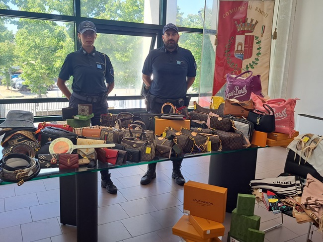 A seguito di una segnalazione telefonica su articoli sospetti in vendita, con prezzi che andavano dai 140 fino ai 350 euro, la squadra giudiziaria della Polizia Locale ha effettuato un sopralluogo nel punto vendita, nel corso del quale ha rinvenuto un centinaio di articoli tra borse, portafogli, cinture, sciarpe e foulard, tutti recanti marchi internazionali e di alto prestigio.