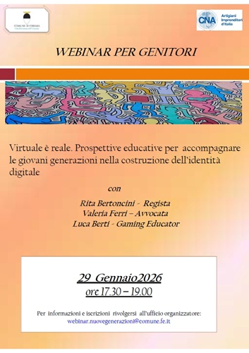 La partecipazione è gratuita, con iscrizione obbligatoria scrivendo a webinar.nuovegenerazioni@comune.fe.it.
