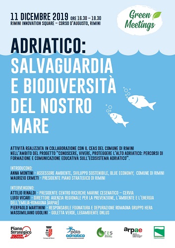 RIMINI – Dopo l’importante appuntamento sul tema dei “Cambiamenti Climatici” svoltosi a novembre, che ha dato inizio al calendario di “Green Meetings”, i pomeriggi di approfondimenti sull’ambiente, proposti dal Piano Strategico e dal Comune di Rimini, per il prossimo mercoledì 11 dicembre è in programma il secondo appuntamento sul tema “Adriatico salvaguardia e biodiversità”.