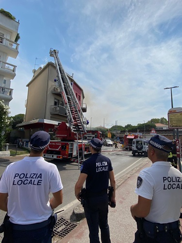 Gli agenti della Polizia locale hanno inoltre messo in sicurezza l’hotel vicino, poiché l’uso degli idranti stava generando la caduta di materiale in direzione della struttura.