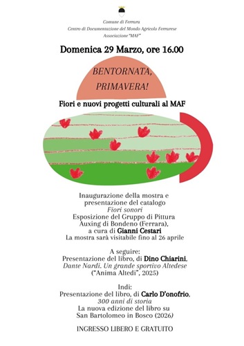 FERRARA – Domenica 29 marzo 2026, dalle 16.00, il Museo del Mondo Agricolo Ferrarese di San Bartolomeo in Bosco (via Imperiale 263 – Ferrara) si darà idealmente il benvenuto alla primavera con nuovi e accattivanti progetti culturali che spaziano tra arte, sport e storia locale.