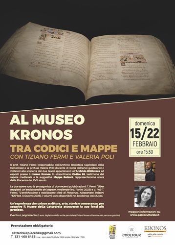 PIACENZA – Il Museo Kronos della Cattedrale di Piacenza propone l’iniziativa “Al Museo Kronos, tra codici e mappe”, un’esperienza culturale che intreccia scrittura, arte, storia e conoscenza, offrendo al pubblico l’opportunità di scoprire il patrimonio archivistico e librario del museo attraverso due opere di straordinario valore.
