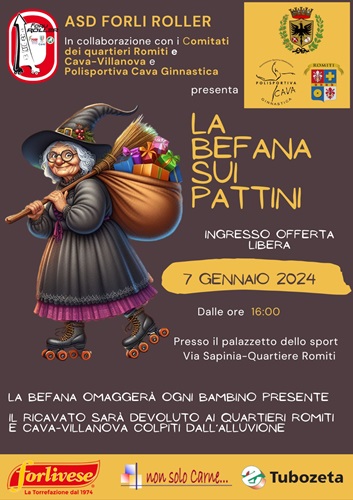 FORLÌ – Anche quest’anno la Befana pattinatrice arriverà al Palazzetto dei Romiti per la gioia dei bambini.