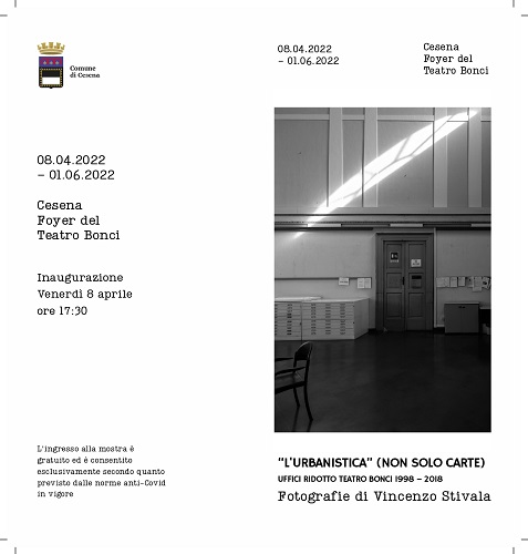 CESENA – Spettacolo e ricerca, attenzione all’arte ma non meno alla tecnica. Inquadra alla perfezione la vera anima del Ridotto del Teatro cittadino “Alessandro Bonci” la mostra “L’Urbanistica” (non solo carte) Uffici Ridotto Teatro Bonci 1998 – 2018” a cura del cesenate Vincenzo Stivala, architetto di origini salentine, ed ex dipendente comunale, che venerdì 8 aprile, alle 17.30, sarà inaugurata nel foyer del teatro alla presenza del curatore, dell’Amministrazione comunale e del direttore Franco Pollini. L’esposizione, che sarà visitabile fino al 1° giugno 2022, si rivelerà al pubblico nei termini di una lunga narrazione fotografica che copre vent’anni, dal 1998 al 2018.