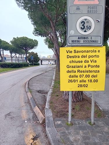 In particolare, l’intervento interesserà il tratto di via Destra del Porto compreso tra il ponte della ferrovia e il ponte della Resistenza, con le seguenti limitazioni al traffico: