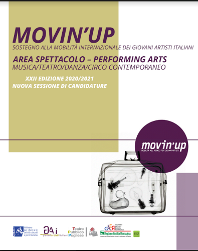 FERRARA – Movin’Up Spettacolo-Performing Arts è un bando rivolto a giovani creativi e creative tra i 18 e i 35 anni di età che operano con obiettivi professionali e che sono stati ammessi o invitati ufficialmente all’estero da enti pubblici e/o privati, istituzioni culturali, festival, organizzazioni internazionali, istituti di formazione e perfezionamento per esperienze di residenza e/o produzione, co-produzione, circuitazione/tournée, formazione, promozione e visibilità (concorsi, residenze, corsi e seminari, workshop, stage, spettacoli, etc.).