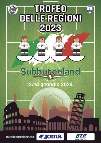 Nel weekend del 13 e 14 gennaio 2024, a Subbuteoland (Reggio Emilia) si assegna il primo Trofeo delle Regioni per le discipline del Calcio da Tavolo e del Subbuteo Tradizionale. Lunedì 8 gennaio, alle ore 21.30, la diretta social con il sorteggio dei gironi