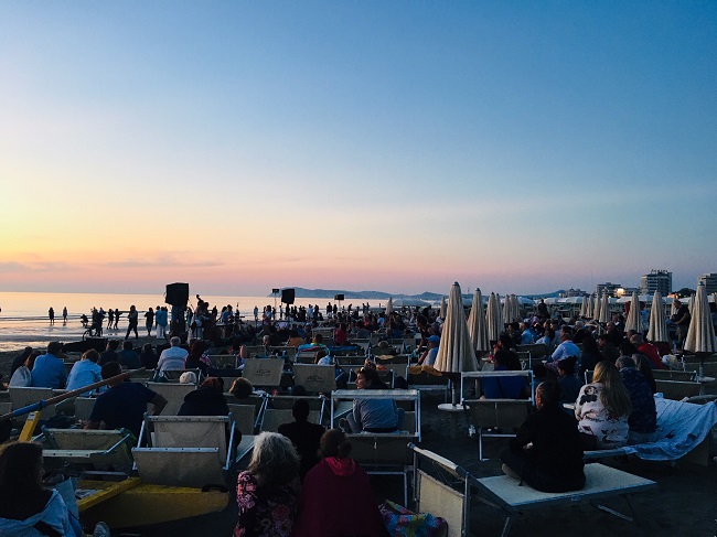 RICCIONE (RN) – E’ cominciata in una mattina dolce e bellissima l’edizione 2019 di Albe in controluce, i concerti al sorgere del sole sulla spiaggia di Riccione.