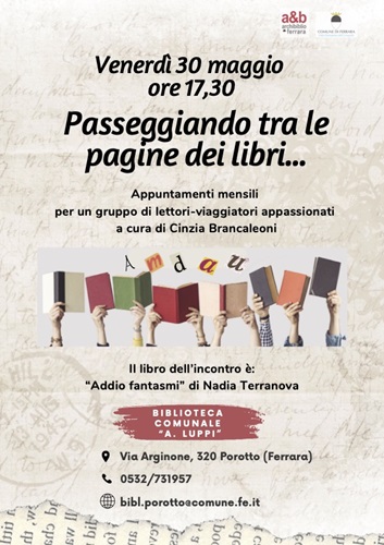 FERRARA – È in programma per venerdì 30 maggio 2025 alle 17:30 il nuovo incontro del gruppo di lettura “Gli Acchiappalibri” alla biblioteca comunale Luppi, di via Arginone 320 (Porotto). L’appuntamento sarà dedicato al libro Addio Fantasmi di Nadia Terranova.