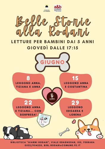 FERRARA – Proseguono anche nel mese di giugno gli appuntamenti del giovedì pomeriggio con le ‘Belle Storie’ per bambini dai 5 anni alla biblioteca comunale Rodari di Ferrara (viale Krasnodar 102). Il primo incontro è in calendario per l’8 giugno 2023 alle 17.15 e a intrattenere i piccoli partecipanti con tante letture divertenti e coinvolgenti saranno le esperte lettrici Anna, Tiziana e Anna dell’associazione Circi.