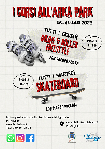 RUSSI (RA) – Dal 4 luglio 2023, all’Arka Park di Russi, il parco attrezzato per la pratica dello skateboarding e sport rotellistici sito presso l’area “Ex Faedi” (Viale della Repubblica n. 9), tornano i corsi gratuiti per iniziare i più giovani, e non solo, a questi tipi di sport.