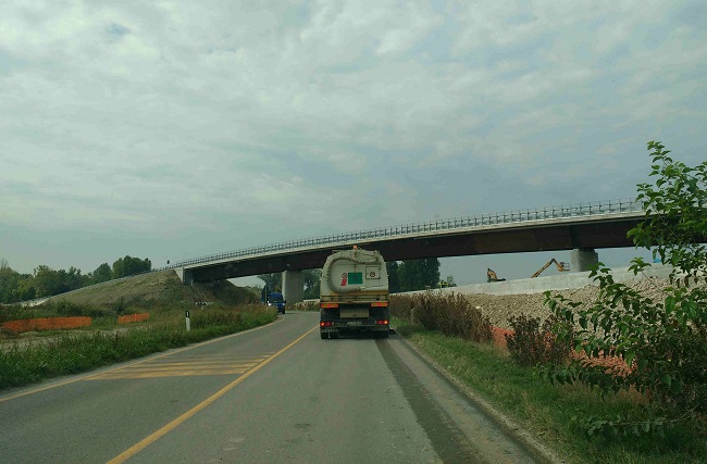 Dopo tre anni di lavori questa struttura è stata consegnata oggi alla Provincia di Parma; si tratta di un km di strada nuova che ridà continuità alla Sp 10, sul tracciato precedente ma in quota perché scavalca la futura autostrada; l’aver portato il traffico sul nuovo cavalcavia permetterà di completare i lavori dell’autostrada che passa sotto il ponte.