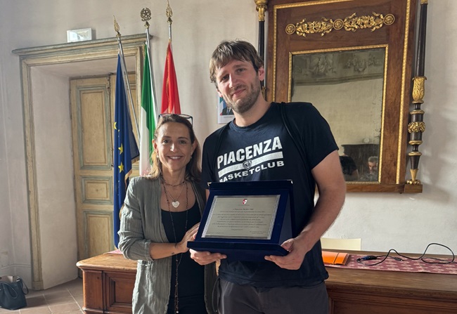 A vedersi attribuire il riconoscimento e l’apprezzamento dell’Amministrazione comunale, innanzitutto, giocatori e dirigenti – Luigi Stecconi e Giovanni Maestri – del Piacenza Basket Club, che circa tre settimane fa hanno conquistato la promozione in serie D, nuova denominazione della Divisione Regionale 1. Nelle mani del capitano Giulio Coppeta, la targa che riporta lo stemma cittadino e la firma della sindaca: “Al Piacenza Basket Club, storico club fondato nel 1978, per la promozione in serie DR1. Una società con un forte legame al territorio e vocazione per il settore giovanile, che raggiunge questo traguardo dopo un campionato di vertice, con un roster composto principalmente da atleti locali. Auspichiamo che questo risultato sia di stimolo per lo sviluppo della Pallacanestro a Piacenza, attraverso nuove forme di collaborazione che permettano la diffusione di sani stili valori e stili di vita”.