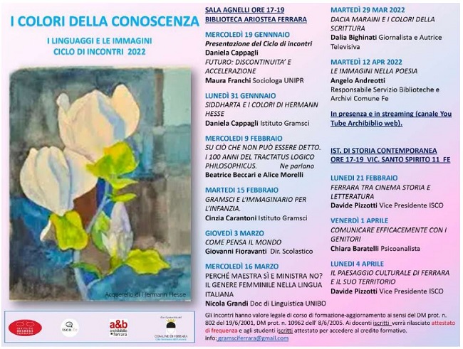 L’incontro rientra nel ciclo di appuntamenti ‘I colori della conoscenza. I linguaggi e le immagini’, a cura dell’Istituto Gramsci e dell’Istituto di Storia Contemporanea di Ferrara.