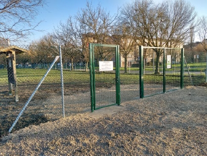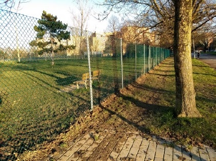Nel dettaglio si è proceduto, oltre alla sostituzione completa della recinzione, con la messa a dimora di pali in ferro zincato e rete verde plastificata, è stato rivisto il tracciato, raccordandolo in maniera più efficace con l’area sportiva confinante. Anche la zona di ingresso all’area ha subito una modifica, con la sostituzione dei cancelli carrabile e pedonale – ora in una posizione più congrua – favorendo l’accesso in sicurezza dei fruitori e dei mezzi di servizio. La bacheca e i cartelli informativi sono stati collocati in una posizione più centrale e meglio visibile.