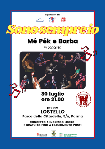 I Mé Pék e Barba si esibiranno nella splendida cornice de LOSTELLO, Parco della Cittadella 5/a, Parma. Il concerto sarà ad ingresso libero e gratuito fino ad esaurimento dei posti disponibili, e si svolgerà venerdì 30 luglio, a partire dalle ore 21.00.
