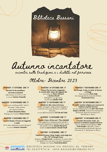 ► Il programma completo degli appuntamenti culturali della biblioteca comunale Bassani e delle altre biblioteche di Ferrara alla pagina: http://archibiblio.comune.fe.it